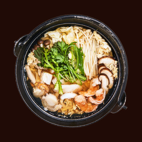 Mild and thin Japanese rice soup with mix seafood, egg and other vegetables